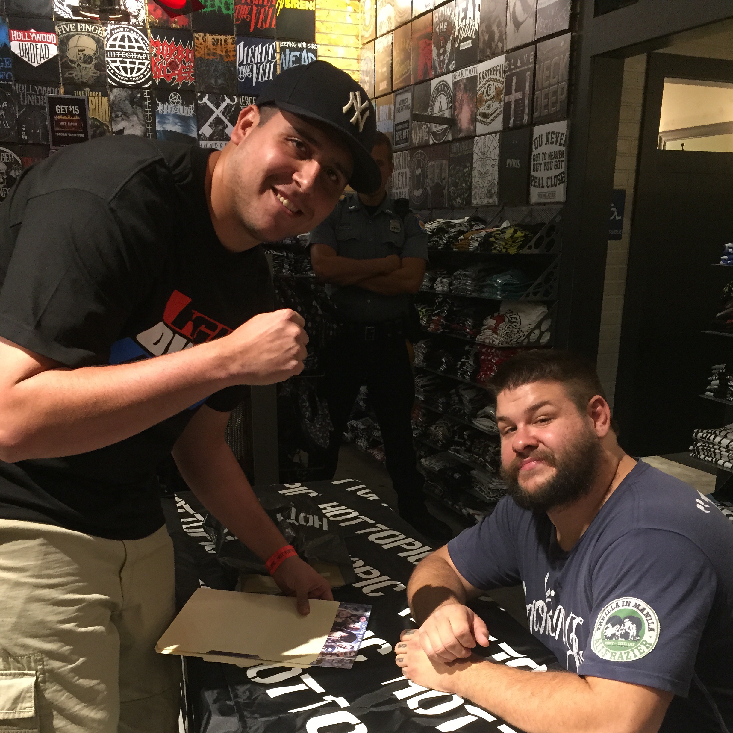 I arrived at the Garden State Plaza at roughly 4:20 PM for Hot Topic’s Kevin Owens signing. You had to purchase his t-shirt to score a wristband; I believe only 225 wristbands were being issued although people were being placed on waitlists! That’s pretty awesome of Hot Topic though not surprising. An employee told me they were sent 300 wristbands.