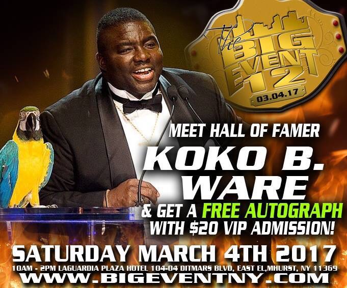 Big Event XII: Koko B. Ware Added as Admission Guest; Tickets On Sale Next Week December 9, 2016 Booker ManLeave a comment Share this: Click to share on X (Opens in new window) X Click to share on Facebook (Opens in new window) Facebook Like Loading...